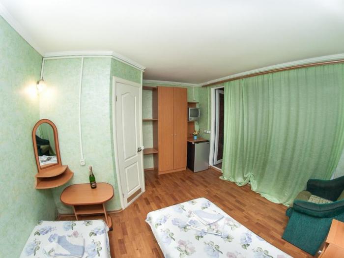 Номера «Полулюкс» - 2-3х местные меблированные номера 20м2 в деревянном 4х-этажном здании с общей террасой. В каждом номере: